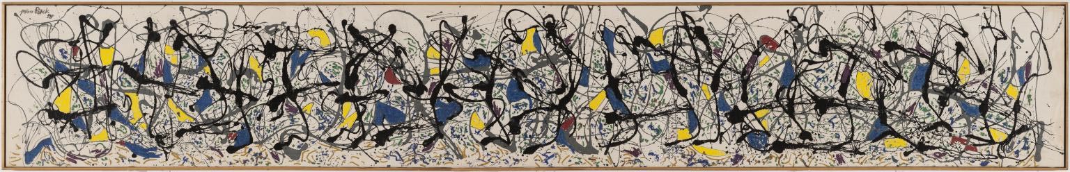 In 1947 Jackson Pollock arrived at a new mode of working that brought him international fame. This direct, physical engagement with his materials welcomed gravity, velocity, and improvisation into the artistic process, and allowed line and colour to stand alone, functioning entirely independently of form.