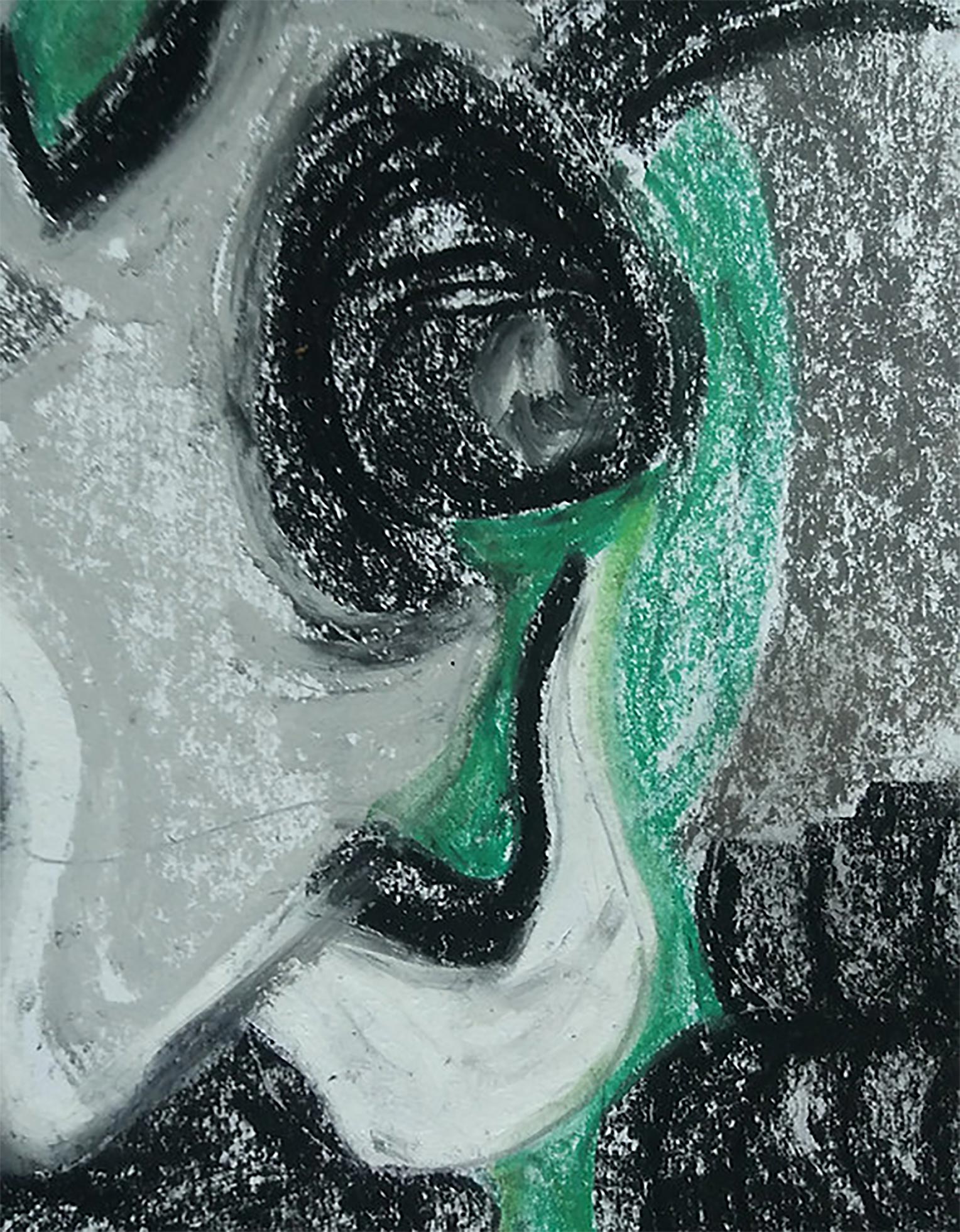 Charcoal and coloured pastels on paper