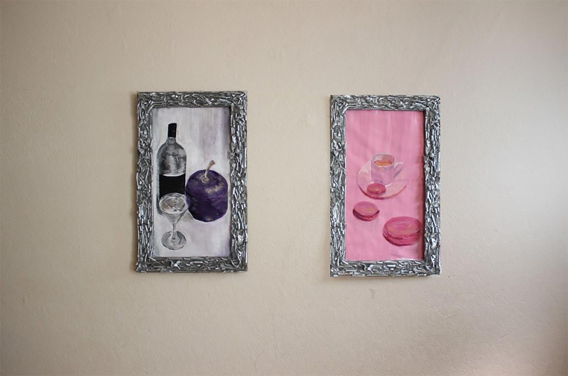 I photographed each of the paintings with and without the frame and cropped and edited it them on photoshop so they look like a diptych.