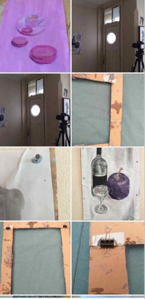 My original idea was to use one painting as the final outcome so I had only made one frame. I had to work out how to attach the frame to the other paintings with the capability to interchange them to hang and photograph to give the illusion that they are a diptych.
