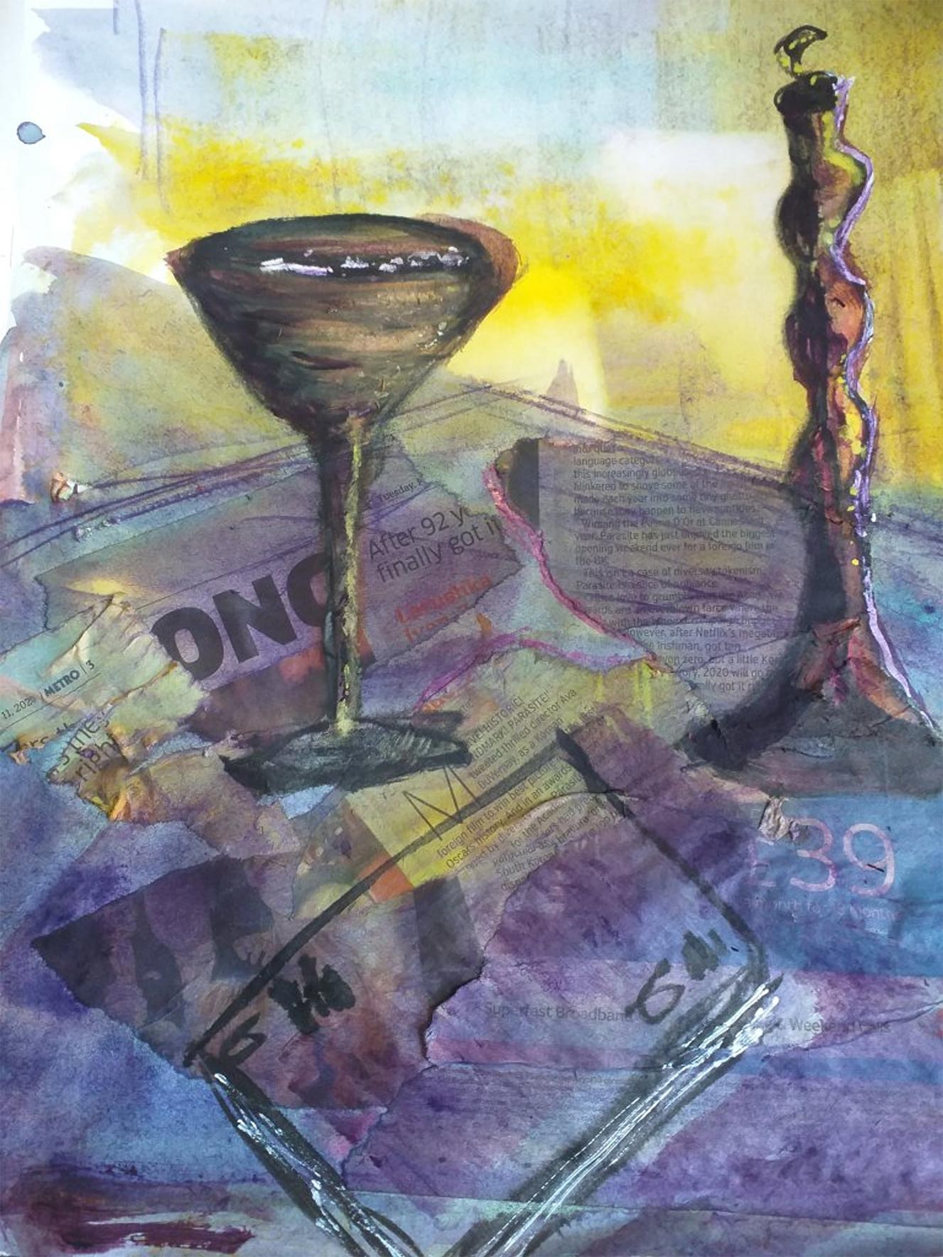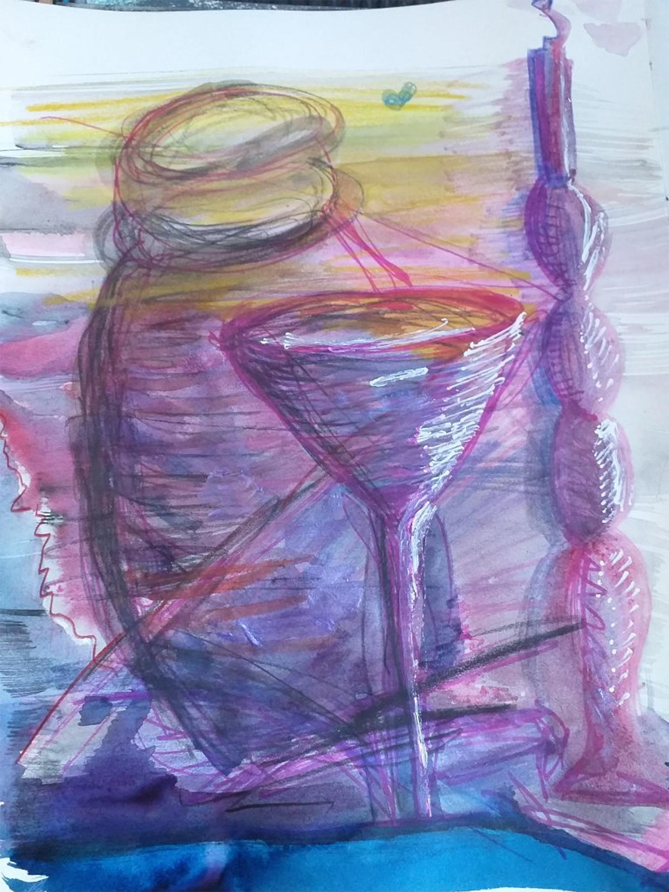 I have decided to use the pineapple ice bucket ,the candle and an apple for my final composition. In Still life symbolism the candlestick is used to remind the viewer of death and the fragility of human life which seems appropriate in the current situation of "covid 19." It also gives the composition height and aligns with the other objects into a triangle which hopefully helps the eye around the canvas. Further to this, it could be interpreted as a phallic symbol if I wanted to explore ideas from a feminist stance and perspective, however I do not think it is the most relevant aspect.