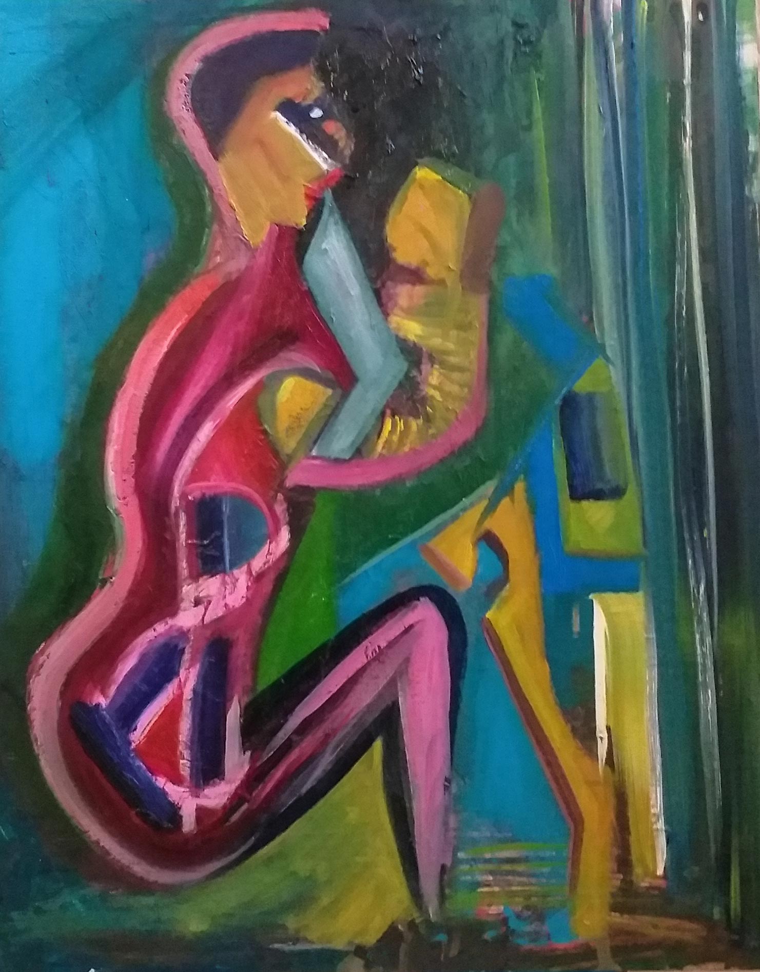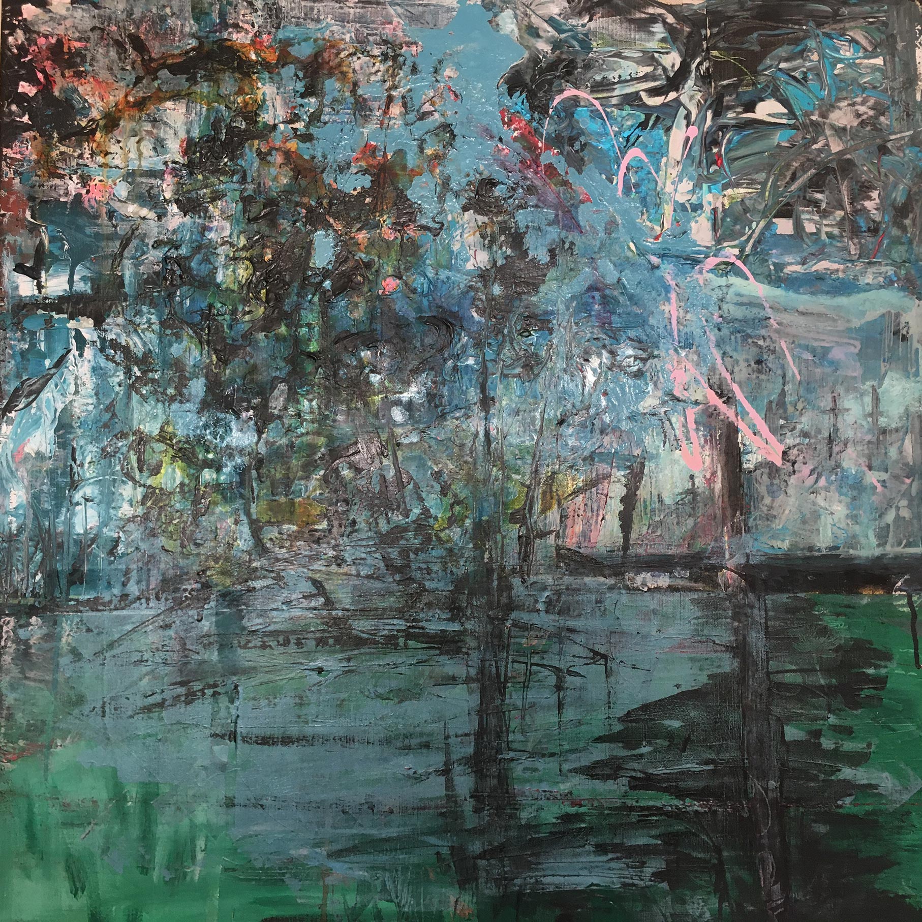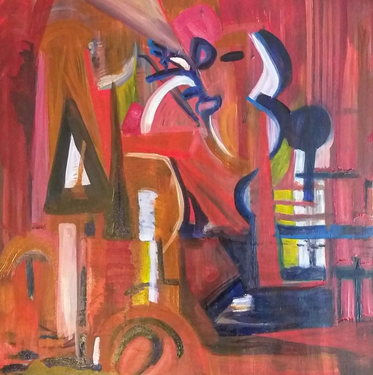 In this painting I tried to concentrate on the brush marks, wanting to create a tension between the forms. Exploring the illusion of space and volume without using specific objects. Using colour as a tool to add perspectives and harmony . I am pleased with this painting.