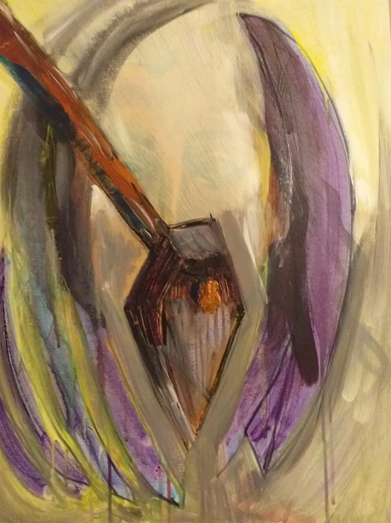 Abstracting the tools into twisting and turning forms against a shifting background. Uncontained gestural nails which are drawn towards the solid mass . The forms seem to be struggling with each other and the background reminds me of a storm which brings in the winds of change. I feel that it has an energy to it. I am pleased with the colour palette.