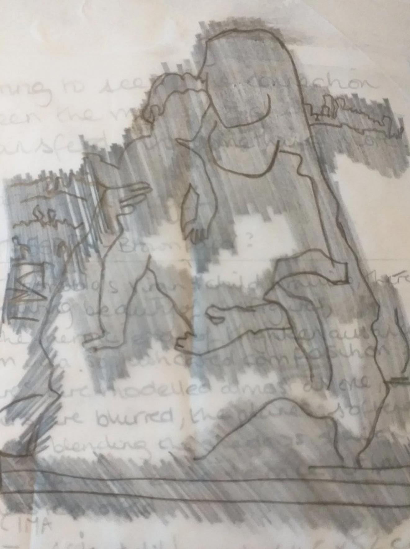 Traced the Virgin and Child to develop a lino print.